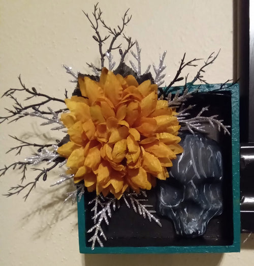 Soft floral accents and layered netting bring a touch of organic detail, balancing the structure of the wood with the more natural, decorative element. The result is a piece that feels both grounded and expressive.